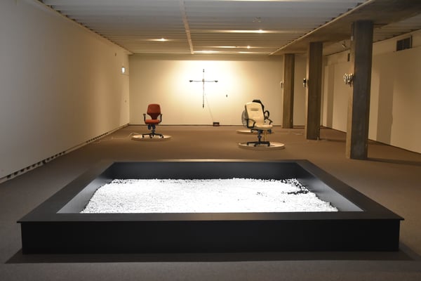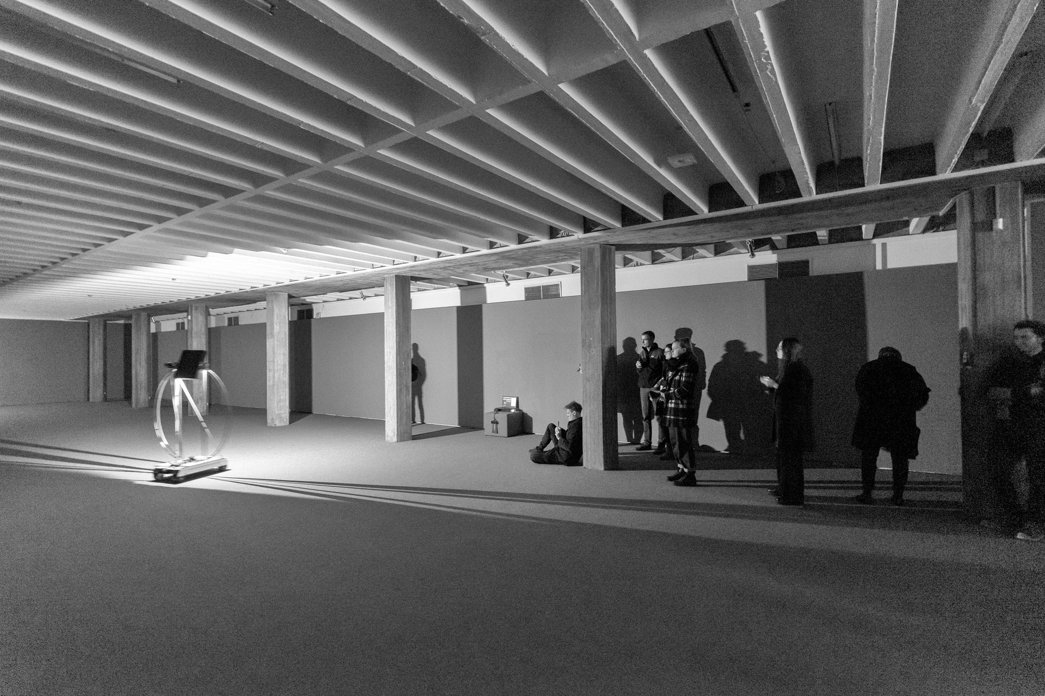 Die Einzelausstellung "Endrohr Apokalypse" des Schwarzwälder Künstlers Olsen (*1975) entfaltet in der brutalistischen Architektur des Kunstvereins im Stadttheater ein Szenario zwischen Sakralität und technischer High-Fidelity. Mit eigens für die Ausstellung geschaffenen, ortsspezifischen Arbeiten thematisiert die Ausstellung Parallelen zwischen Technologie und Theologie.